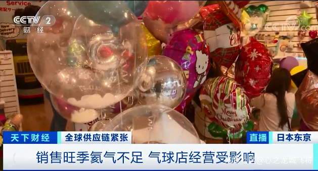 東京澀谷是東京著名的娛樂休閒區。為了讓氣球漂浮在空中,近年來,安全性更高的氦氣,成為了填充氣球的主力軍。一家派對用品店店長告訴記者,店內上千種氣球中,半數以上都是填充氦氣的。不過沒想到的是,就在一年中生意最好的年末旺季,氦氣卻出現了供應緊缺 ,使經營受到一定程度的影響。
