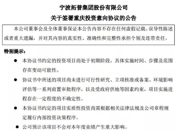 協議書項目下的計劃總用地約500畝,項目一期用地約180畝,佈局新能源汽車輕量化底盤系統暨內飾隔音件系統生產基地。項目二期擬佈局汽車電子系統、熱管理系統。
