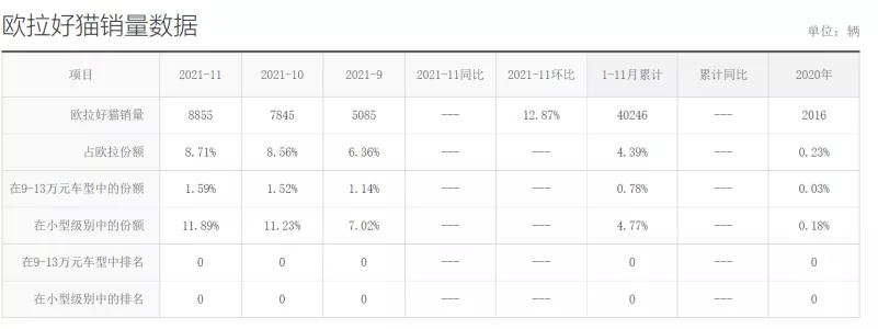 據官方數據顯示,歐拉2021年前11個月銷量為114102輛,同比增長162.21%,力壓長城汽車旗下哈佛、WEY等品牌的增速。