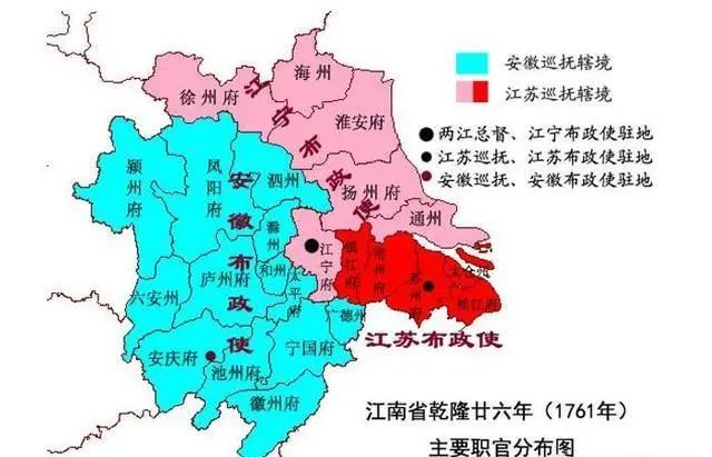 到了乾隆二十五年,安徽布政使司才從南京搬到了安徽南部的安慶,但南京依然保留了一個布政使司,管理着蘇錫常以外的江蘇地區。