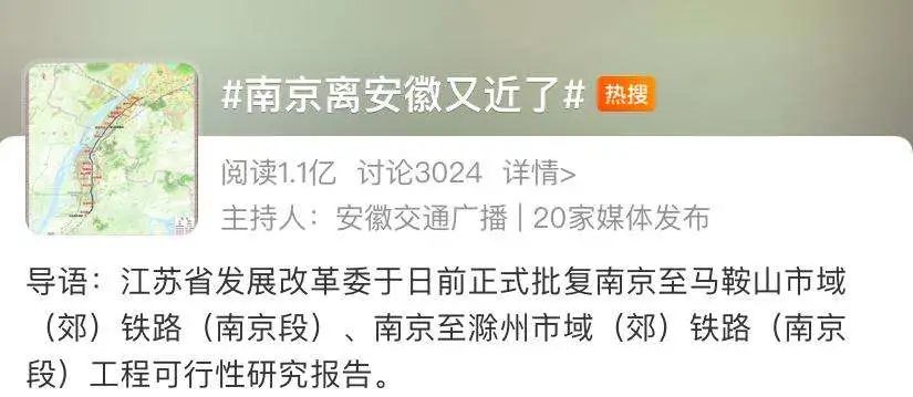 前一陣,熱搜歡歡喜喜地宣佈:“南京離安徽又近了”——南京和安徽滁州、馬鞍山之間一段新的軌道交通即將開工建設。