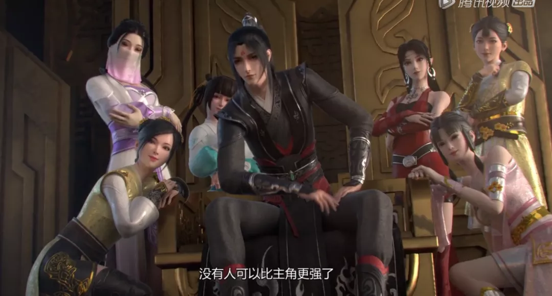 六個妹子眾星拱月,霸氣男主當中而坐,一股濃濃的起點文學風拂動着直男們的心,就連動畫出現的網頁界面與傳奇廣告都直得一飛沖天。