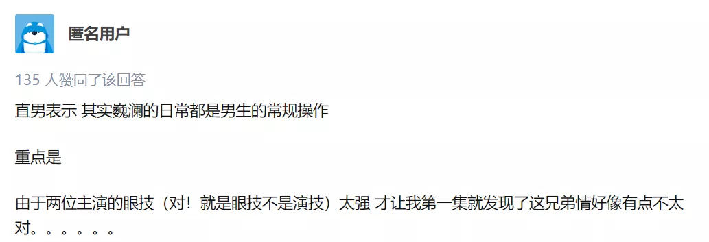 雖然套路多,但想要避開耽美,不會比淘寶購物更難,評論區成百上千的“kdl”會讓直男明白這部劇的核心奧義,就算看不明白簡寫,度娘也會貼心地奉上標準答案。