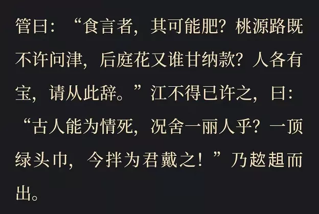 江昌奇愛上管小公子,而管小公子卻喜歡江昌奇的老婆,於是江昌奇甘願為情戴綠帽,得以入桃源、進後庭。