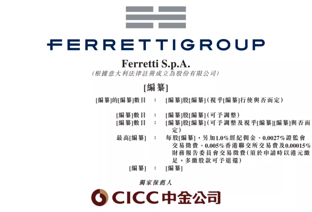 據港交所12月24日消息,法拉利家族部分持股的意大利豪華遊艇製造商Ferretti S.p.A向港交所主板遞交上市申請,中金公司擔任其獨家保薦人。