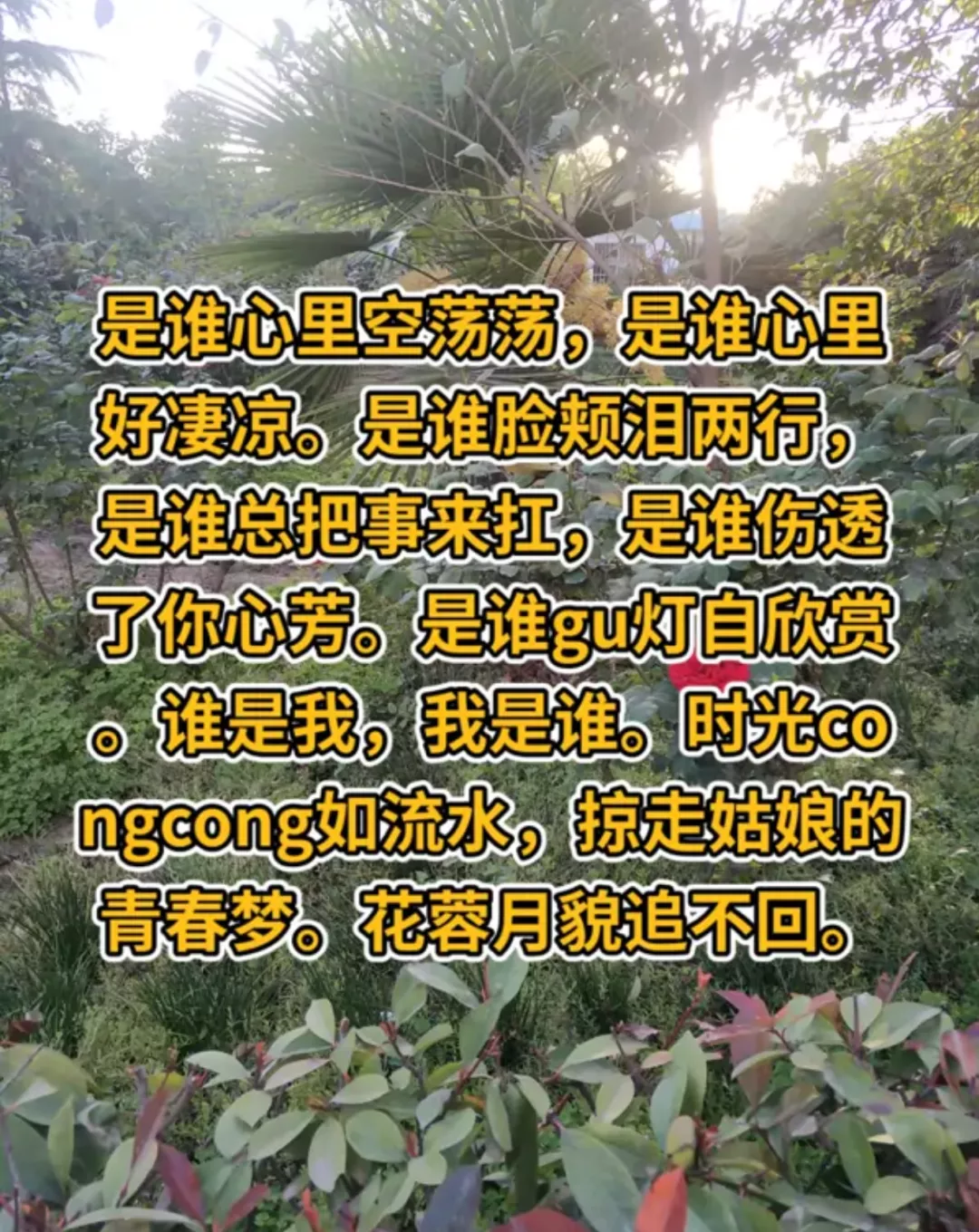 時過境遷,苦難磨掉了她的靈氣,愛過的書籍和歌曲,好些名字都記不真切了。字也忘了不少,在她的詩裏,經常出現錯別字,或是拼音替代的寫法。這也是她學格律的阻礙,字都識不全,更別提平仄發音了。