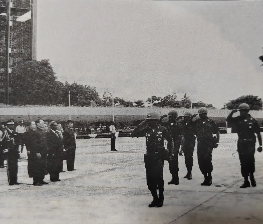 1988年,曹元欣大使到任。不久利方即安排遞交國書。我作為政務參贊同經濟參贊、商務參贊一起陪同他向多伊總統遞交國書。在總統府大樓前的廣場上,曹大使檢閲了儀仗隊。