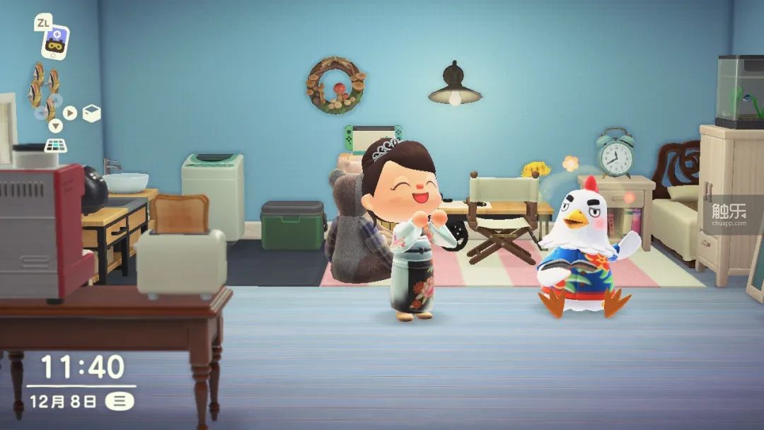 我在島上關係最好的小動物是肯肯,那隻特別熱衷於鍛鍊的小公雞。我不知道為什麼他和我互動特別多,還經常到我家來玩。當然我家其實很簡陋,沒怎麼建設和裝飾。因為我哪怕在遊戲中需求也沒有那麼大,只需要有一個自己的房間、適量的傢俱、一個相對寬敞的廚房,還有幾隻熊,就覺得已經摺騰完畢了。即便如此,肯肯每次來還是會誇我家裏佈置得好,説我飯煮得香,以及和我這個完全不喜歡運動的鹹魚交流練肌肉的心得。即使只是坐在我家地板上看漫畫,他看起來也很開心。