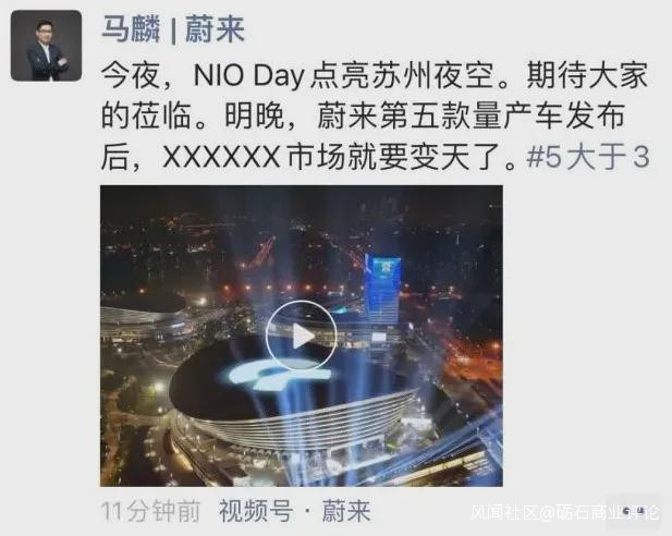 ET5發佈之前,蔚來汽車企業傳播高級總監馬麟在朋友圈發文稱,“蔚來第五款量產車發佈後,XX市場就要變天了”,同時強調“5大於3”。