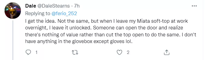 而如今又有一個新操作,SUV車主們 直接將後備箱敞開(等待砸車賊檢閲)。