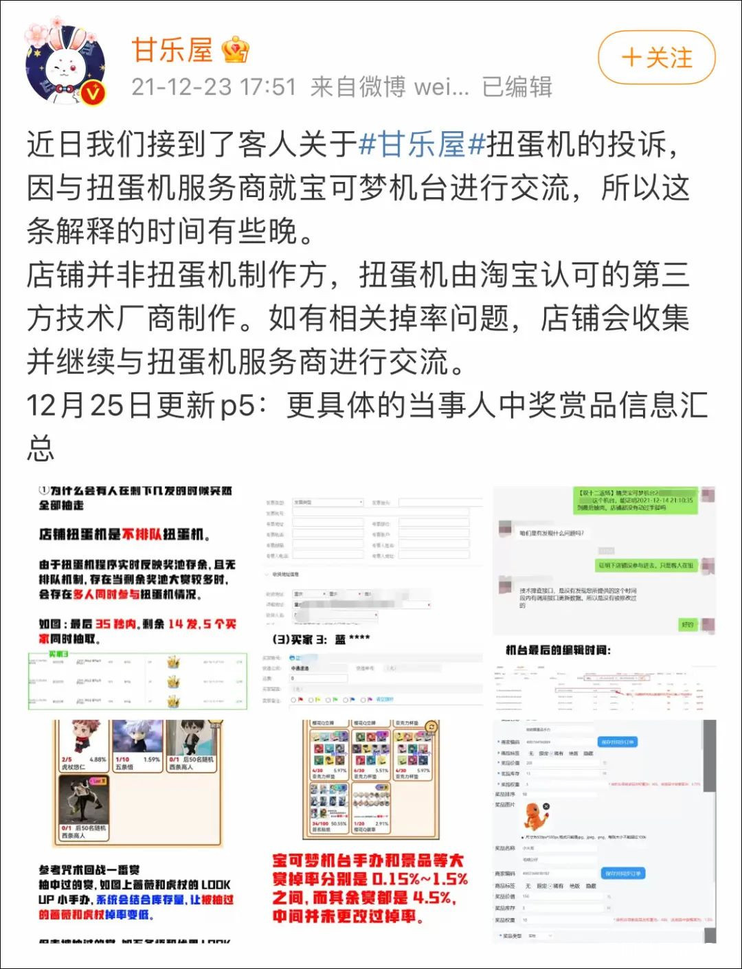 (甘樂屋對舉報扭蛋作假的回應,純屬臨時工了)