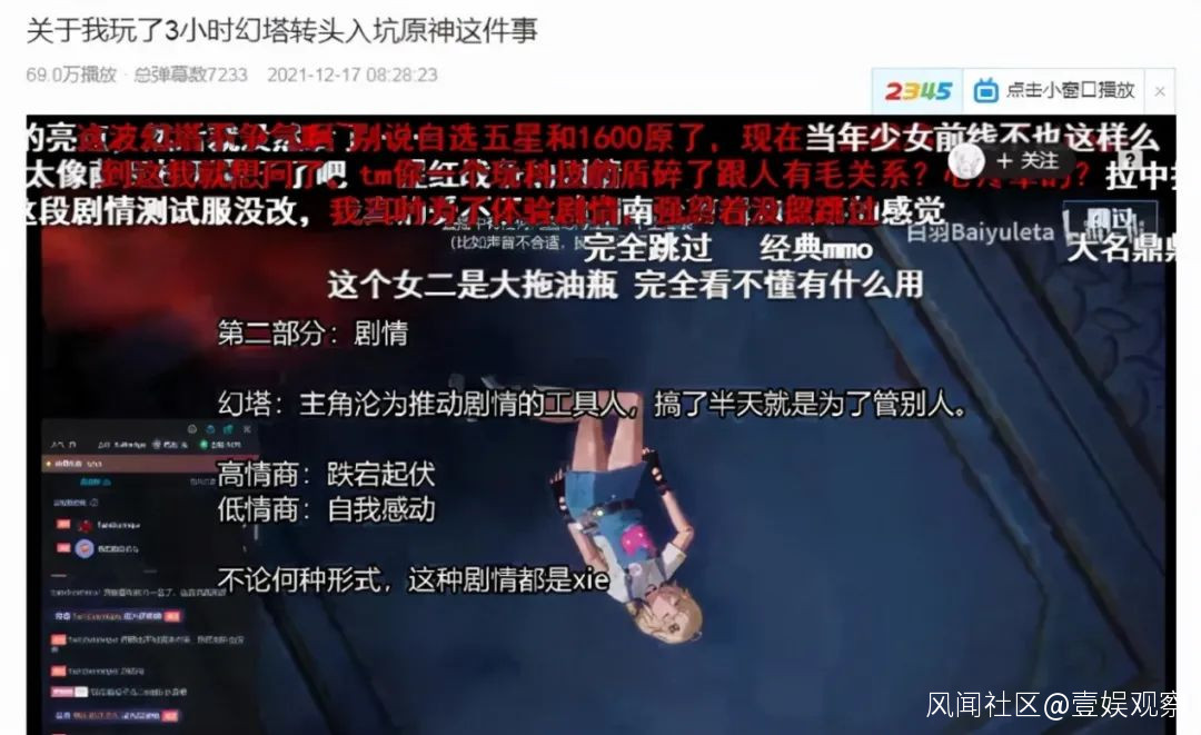 總體而言,從12月16日《幻塔》正式公測開始,圍繞在《原神》和《幻塔》中間的輿論場,被玩家、媒體、製作公司三方推到枱面上,烈火烹油。