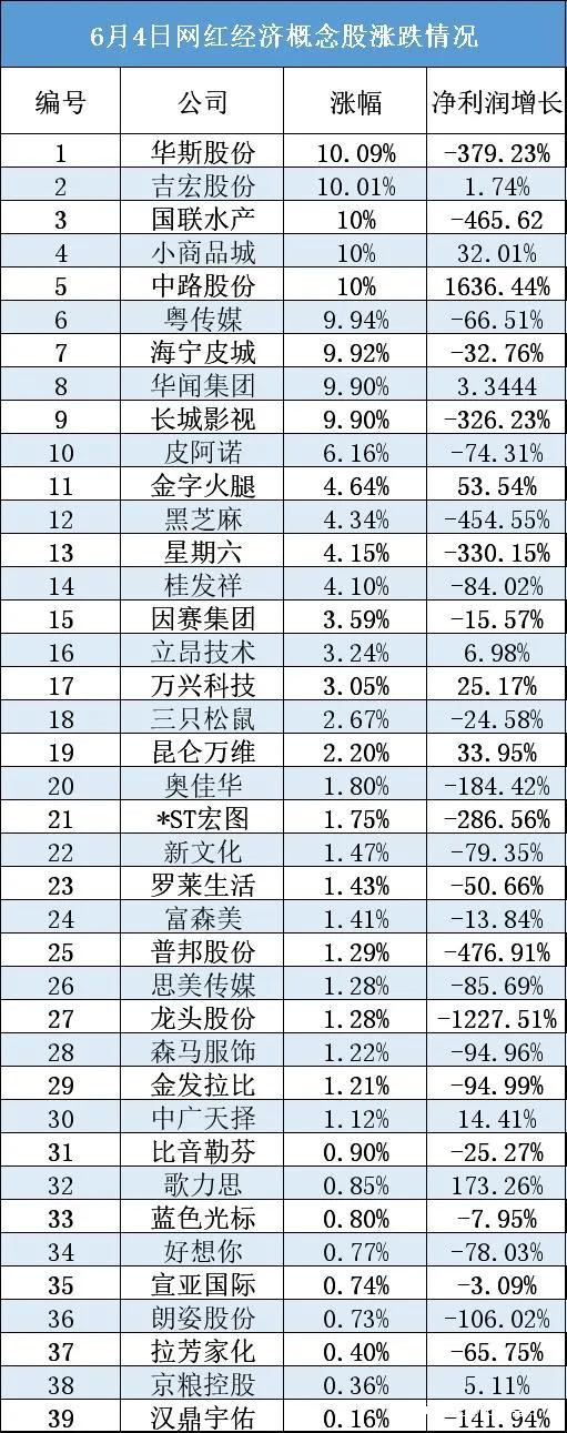 去年DoNews整理了一份“蹭上”網紅經濟且股價大漲的上市公司的業績該板塊39家股價上漲的公司中,僅有11家在2020年Q1的淨利潤實現同比增長,其餘28家均為下滑狀態。其中,星期六、新文化、長城影視當期淨利潤分別同比下滑330.15%、79.35%以及326.23%。