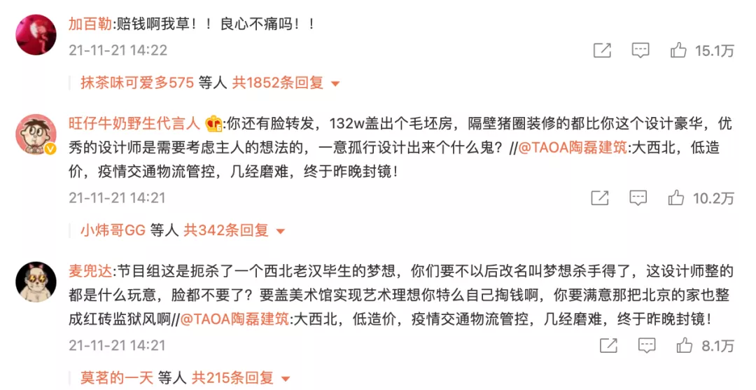 説到底,這期節目鬧出這麼大動靜,除了設計實在離譜,觀眾更不爽的是設計師那股裝逼勁兒。