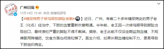 新聞中的男子患有的正是糖尿病人羣中常見的“糖尿病足”。
