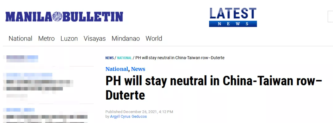 據菲律賓媒體26日報道,該國總統杜特爾特上週出席宿務省拉普拉普市一會議,針對南海問題和台海局勢鄭重表達其態度。