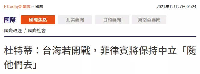 據報道稱,杜特爾特針對南海問題和台海局勢,表達了以下9點: