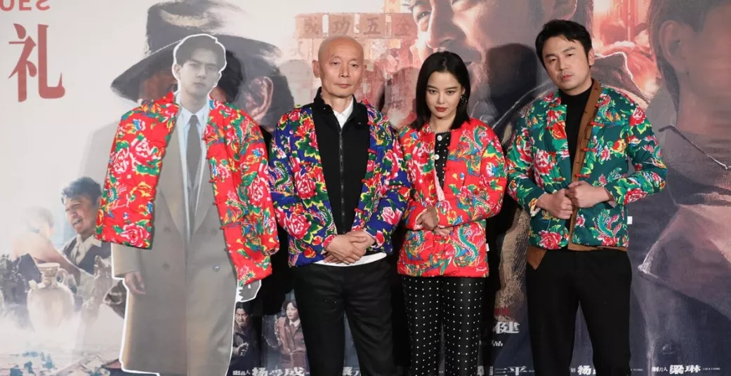 在日前《古董局中局》首映會上,東北大花布又一次閃亮登場。“奪寶小分隊”穿着花襖魔性合影,李現人雖沒來,但戰袍必須披上。這不禁讓我們想到2015年張馨予在戛納電影節紅毯上的“驚鴻”一瞥。