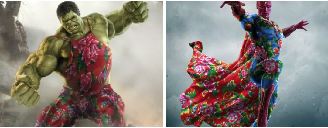 試着挖掘腦海中對於紅綠大花布的記憶,或許可追溯於東北二人轉、春晚小品、趙本山、《鄉村愛情故事》……等等極具東北特質的詞彙。