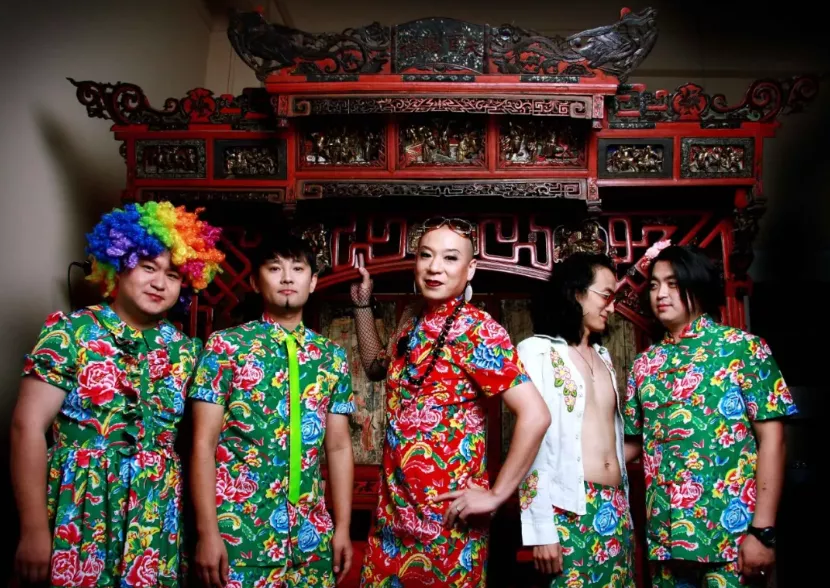 **第二,東北大花布為“潮流”與“時尚”提供了“變土為潮”的優渥土壤。**一方面,娛樂圈和時尚界紛紛下場玩轉花布,雖然其中不乏標新立異和吸引眼球的目的,但客觀上也讓大花布沾染了時尚的氣質,模糊了精英與草根之間的界限。另一方面,東北大花布本身藴含着的東北喜劇氛圍和傳統鄉土特色與潮流文化相碰撞,演繹出某種雅俗共賞的審美特質,為其增添了大俗即大雅的人文色彩。比如東北樂隊二手玫瑰,將東北大花布的視覺精髓融入怪誕的音樂風格之中,為人們造了一場情懷之夢。