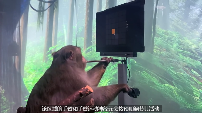 在視頻中,9歲的獼猴盯着電腦屏幕打乒乓球遊戲,它在此視頻拍攝前6周剛剛植入了Neuralink。