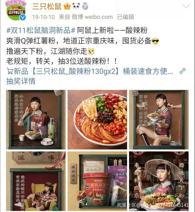 於是隨着時間的推移,爭吵的雙方火氣越來越重,繼而輿情擴大,乃至於把火燒到了三隻松鼠的身上,把三隻松鼠兩年前的宣傳圖放到枱面上加以批判。