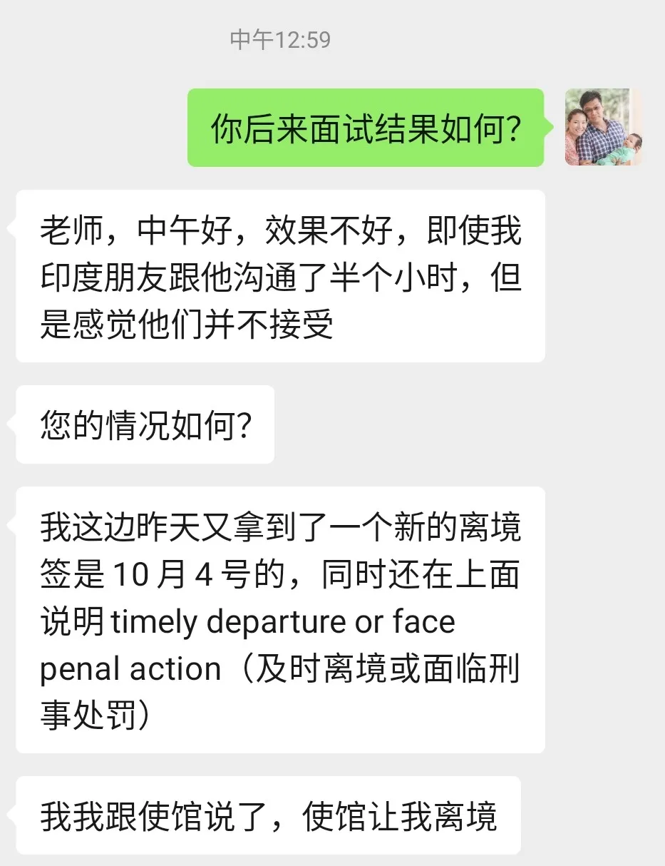 隨後我又發現,**我可能是第一個被移民局要求十日內限期離境的中國人,但絕不是最後一個。**9月30號是許多人簽證的最後期限,由於我在印度圈子裏也算小有名氣,正當我自己身陷囹圄之際,居然還收到了別人的求助。