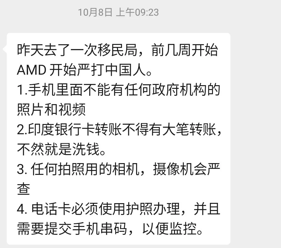 我被抓的第二天,一位在古吉拉特邦某大廠工作的朋友發了個消息給我,他説他剛去了一次移民局,這幾周當地開始嚴打中國人,主要有以下措施:
