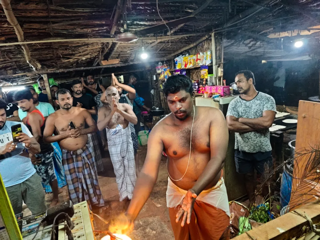 每逢印度教節日,餐廳還是一個祭祀場所。這是十勝節(Dussehra)時候拍的。圖源:“隨水文存”微信公眾號