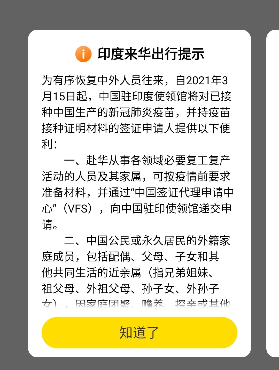 我本來還以為中國不給印度公民簽證是由於印度的疫情問題,後來才知道迫於印度疫情關閉簽證服務那是印度第二波疫情爆發之後的事情。為了順利推進“春苗行動”和全球各國對中國疫苗的認可,2021年3月15日中國駐印度使領館曾頒佈過一個規定:**為接種過中國疫苗的印度公民提供簽證便利服務。**這個邏輯很清楚也很合理——想來中國可以,但你要先接種我們中國生產的疫苗;想要接種中國疫苗也不難,印度政府允許“春苗行動”在印度落地即可。