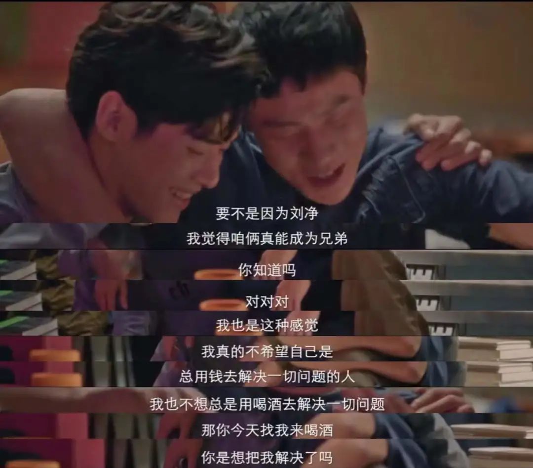 **劉冬沁:**我覺得劇裏宋超和姜山木在家裏喝酒那場戲,就已經説出宋超的心裏話了。他當時自己一個人在國外,看到劉淨直播做飯,給了他莫大的力量。回國之後,他了解了劉淨生活中其他的樣子,發現劉淨不會在乎他有沒有錢,對他沒有好感,但這樣反而會讓他覺得劉淨很真實,相處起來很自在。他的身邊已經很難再出現這樣的人了,他很珍惜。