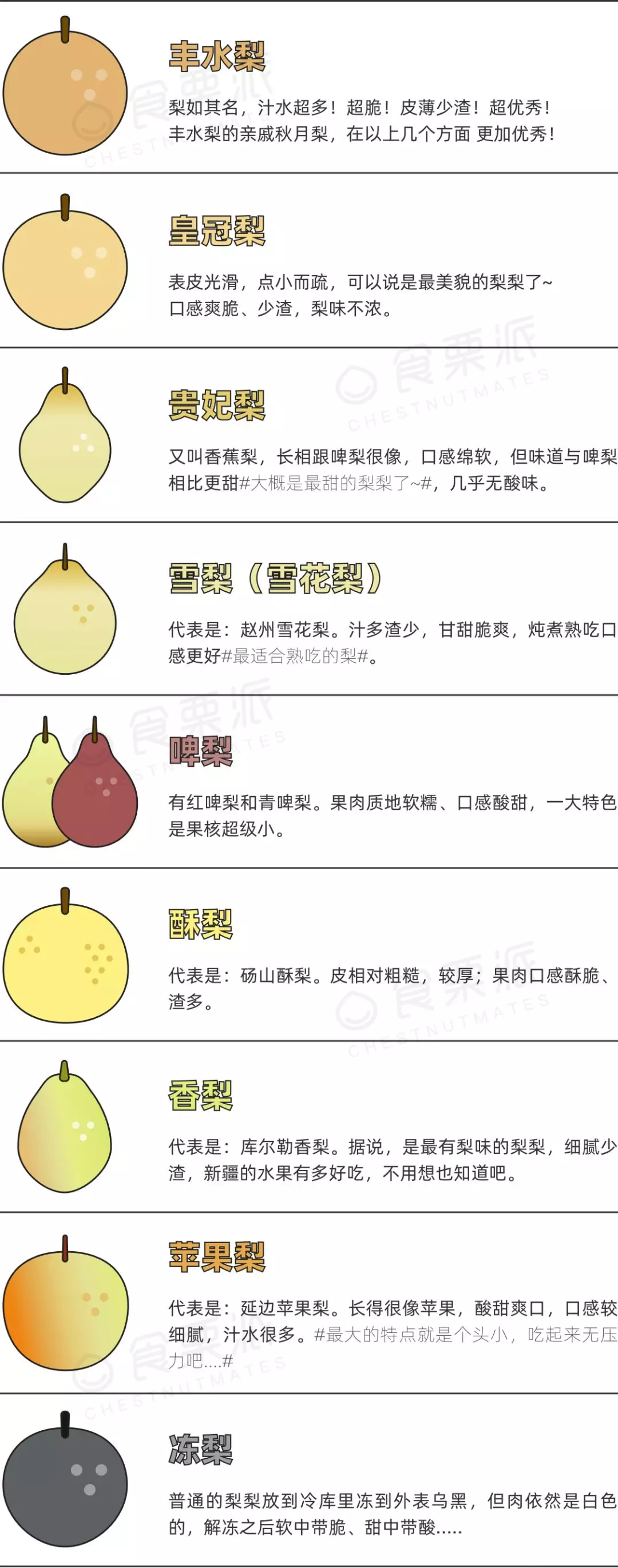 梨的種類很多,“國產梨”主要有4種:秋子梨、白梨、砂梨、新疆梨。(它們可都是完全不同的物種哦)