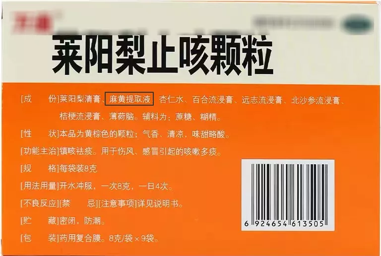 藥店裏賣的“XXX梨止咳顆粒”,配方里加了麻黃,其中所含的麻黃鹼才是主要的療效成分。(加梨的作用和糖一樣,主要還是為了讓藥好喝一點吧)