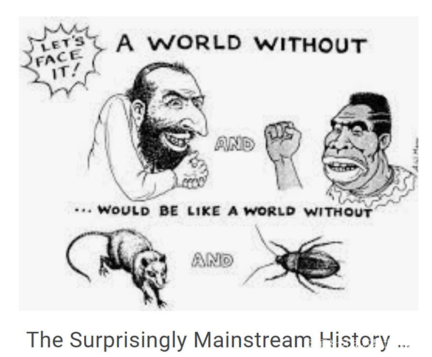 把黑人和猶太人和老鼠臭蟲放在列為一組,統稱“人類生存的威脅”,也就是不承認猶太人和黑人是人,這就是二戰前美國主流媒體的態度。當然,後來因為無產階級工農政權的蘇聯成了超級強國,新中國的成立以及它對亞非拉國家和美國黑人的政治支持以及世界左派力量的崛起,歐美國家出於和中國蘇聯等社會主義政權進行國際政治競爭的緣故,不得不拋棄了這種過去一直被全民大力鼓吹的反人類論調,後來出於政治考慮西方直接把這種論調列為禁忌。