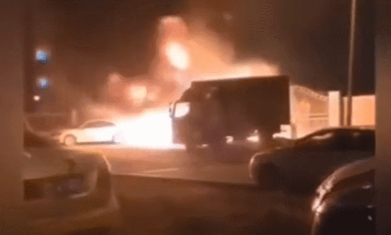 從網友的視頻中,能看出火勢猛烈,疑似有一輛私家車被引燃,受損嚴重,所幸並無人員傷亡。