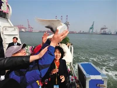 在北京,不留墓碑的海葬家庭,可以參加一年一度的公祭活動,在高聳的生態葬紀念碑前,一起放飛2000餘和平鴿,為逝者祈福。