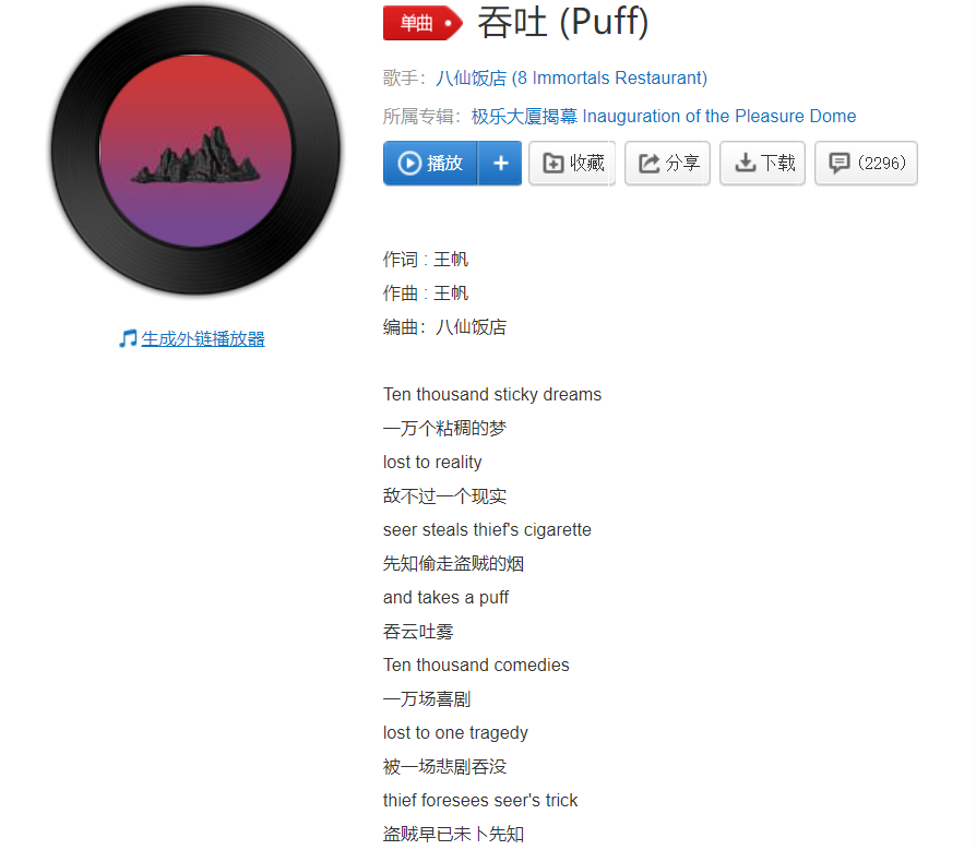 比如這首《吞吐》,咱們仔細看它的歌詞