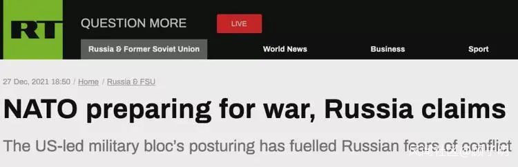 當地時間27日,俄羅斯副防長福明在記者會上表示,北約正在為與俄羅斯進行大規模武裝衝突做準備,俄羅斯外長拉夫羅夫亦表示,不排除西方想在烏克蘭挑起一場“小型戰爭”的可能。