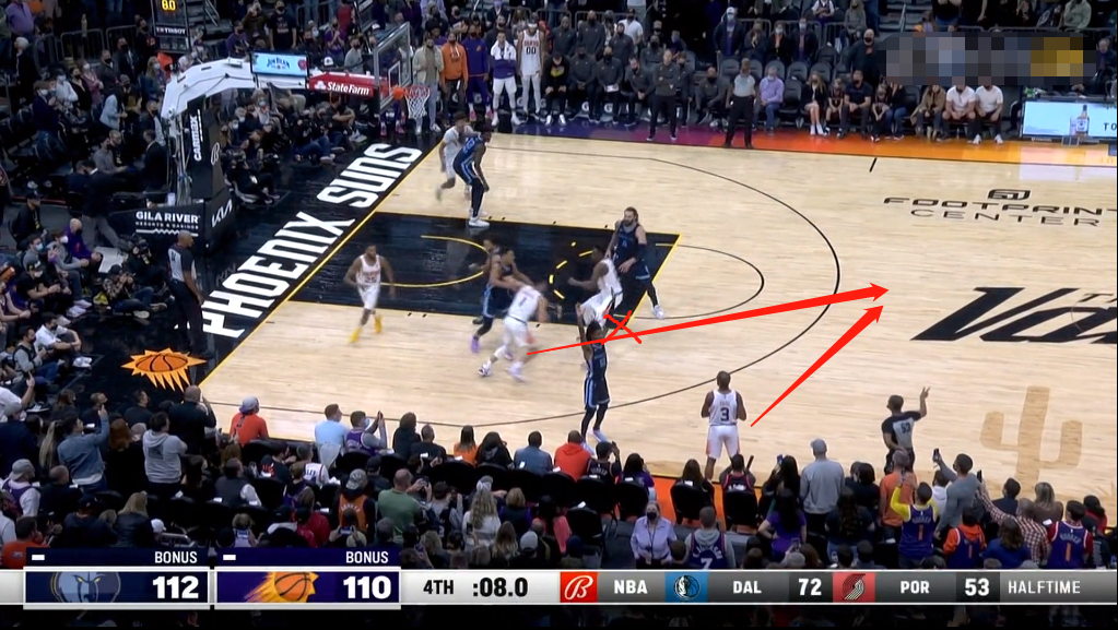但太陽畢竟是聯盟目前最頂尖的球隊,尤其是第四節和關鍵階段。第四節開局趁着莫蘭特不在,太陽從後場開始逼搶灰熊的持球人,抓住一切造灰熊失誤反擊的機會。
