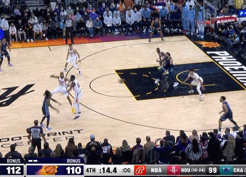 但是保羅和布克立刻到禁區和灰熊搶成一團,最後布克把球撥給布里奇斯排進,太陽110-112。
