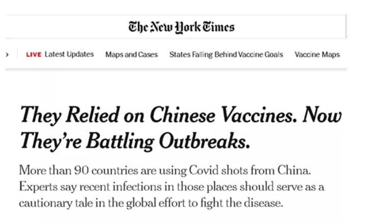 自新冠疫情發生以來,美國《紐約時報》就一直衝在抹黑中國疫苗的一線,多次用違背基本科學常識的口吻,妄圖打擊中國疫苗的國際公信力,甚至編造出了諸如中國疫苗是“倉鼠卵巢細胞”製造的這種讓科學界貽笑大方的謠言。