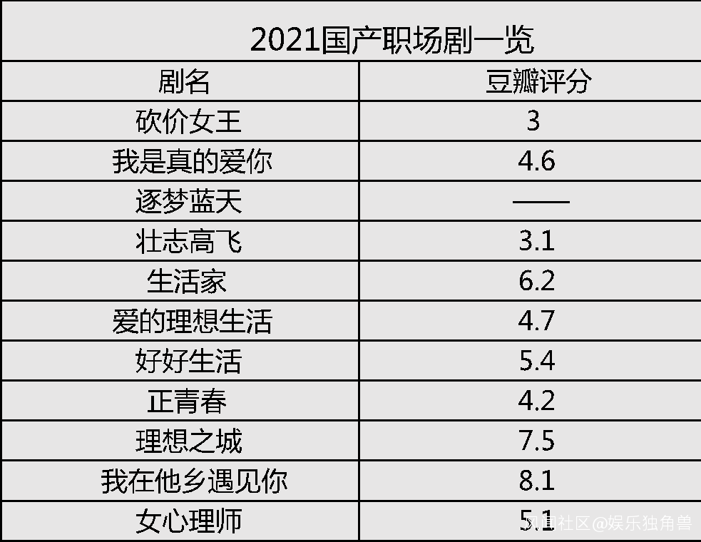 以今年為例,據不完全統計,今年的都市職場劇題材有且僅有11部,這還是包含了《我在他鄉挺好的》《愛的理想生活》《正青春》這樣的“泛職場題材”,可見這類型作品的稀缺性。