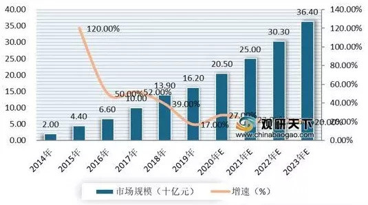 2014-2023年我國綜藝節目市場規模預測及增速 圖源:觀研天下