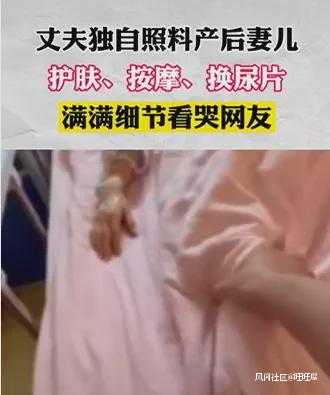 不僅如此,還從下面遞水杯給妻子,囑咐妻子喝水。一個是丈夫照料產後妻兒,護膚、按摩、換尿片,滿滿的悉心和細心。