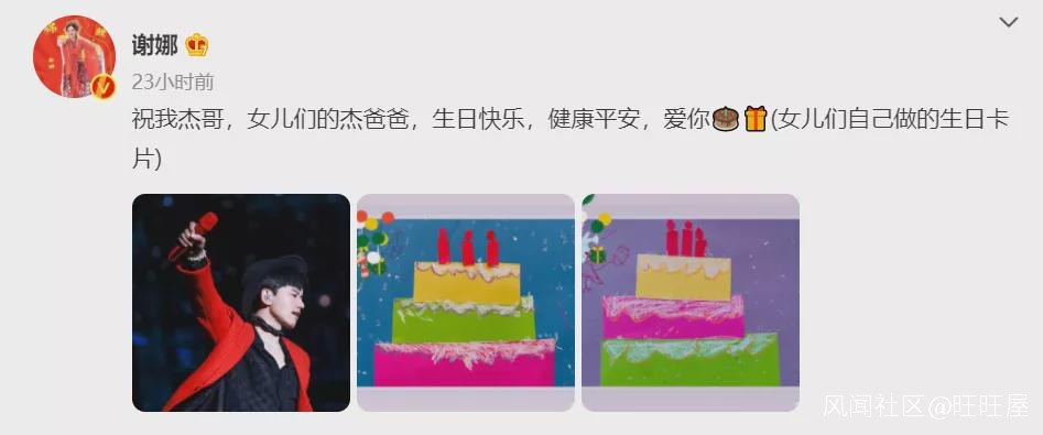 12月20日是張傑39歲生日,謝娜送上自己和孩子的祝福。