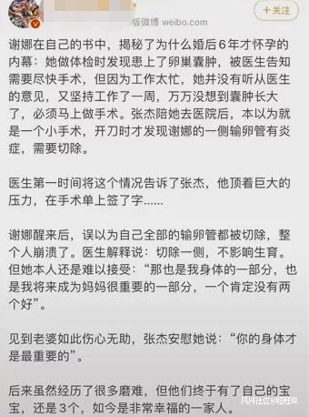 謝娜自曝曾切除輸卵管,張傑的反應讓她永生難忘……_風聞