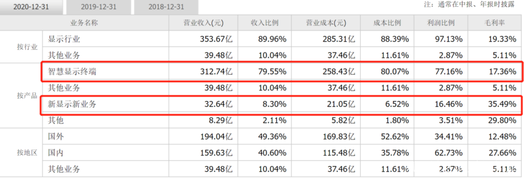 顯示面板依舊是海信的主營業務,經營利潤來源於加工費及上游採購與下游銷售的差價。對於海信來説,成本風險沒辦法像軟件成本那樣被消費量級均攤,產品的生產成本是多少價格就是多少,降價或漲價很大程度上受限於行業整體走向。
