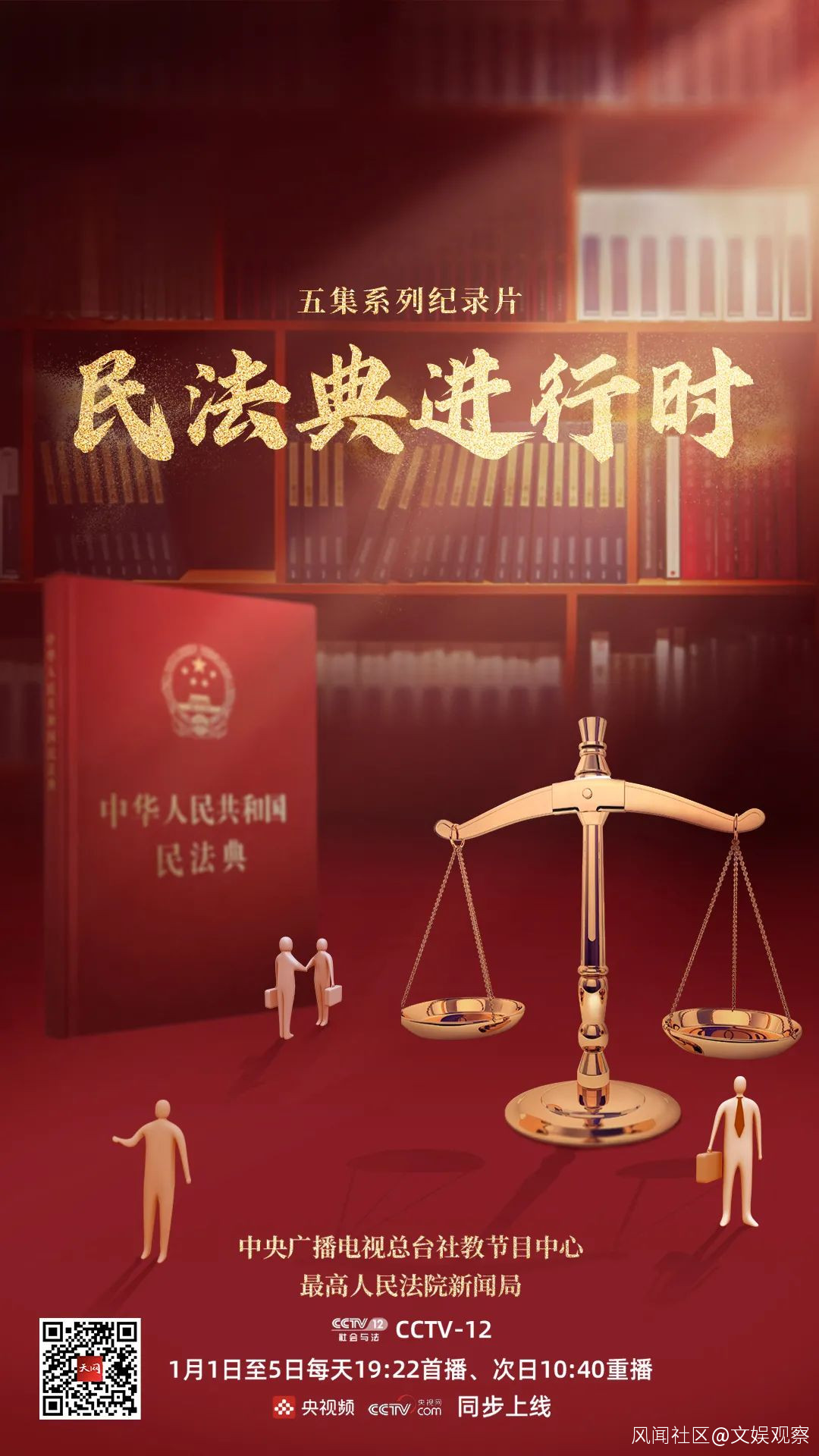 2022年1月1日,是《中華人民共和國民法典》實施一週年的日子。一年來,民法典如何維護人一生中各個階段的權利?如何回應社會發展中的新問題?如何深刻影響了你我的生活?中央廣播電視總枱社教節目中心將於2022年1月1日至1月5日隆重推出五集紀錄片《民法典進行時》,通過一個個真實的案例,展現個人生活和社會生活的顯著變化,呈現法律條款在基層實踐中的落地生根,揭示新時代我國法治建設的新高度。