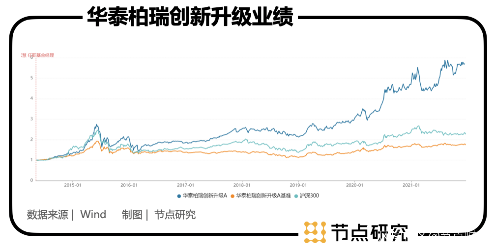 成立以來,年化收益率24.92%,同期滬深300為11.38%。從歷史走勢圖中可以看出,華泰柏瑞創新升級的長期業績是遠超比較基準及滬深300的。截至12-20-2021,華泰柏瑞近總回報率為447%(7.6年),同期滬深300位126.32%;近五年總回報率為199.72%,同期滬深300位47.49%;近3年回報率為154.17%,同期滬深300位59.11%;今年以來回報率為11.88%,同期滬深300為-6.35%。總體呈上升趨勢,也存在下行波段擾動及震盪。