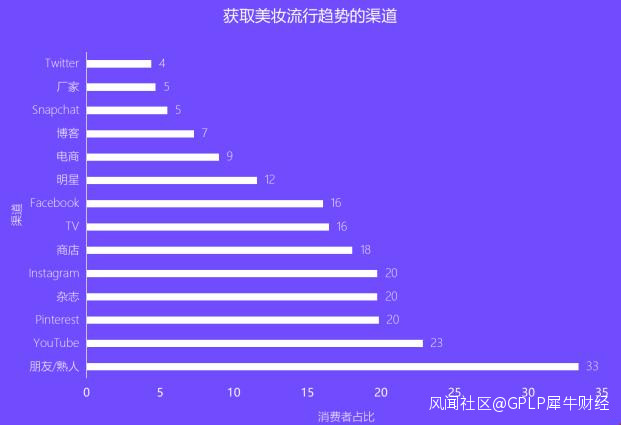 互聯網在30歲以下的年輕人滲透率較高,因此更容易接受從線上渠道瞭解和購買美妝個護產品,雖然在具體消費渠道上,百貨商場、日雜店、超市仍是前三大消費渠道,電商等線上渠道直接產生的銷售額還不及這些傳統消費渠道,但年輕人更願意通過互聯網來獲得美妝個護產品信息、瞭解最新流行趨勢等,線上渠道仍然是品牌和商家們不可忽視的重要渠道。